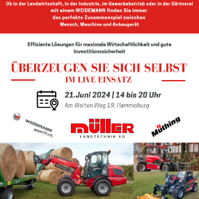 Es erwartet Sie eine LIVE Vorführung rund um die Maschinen Weidemann und Müthing GmbH & Co. KG .